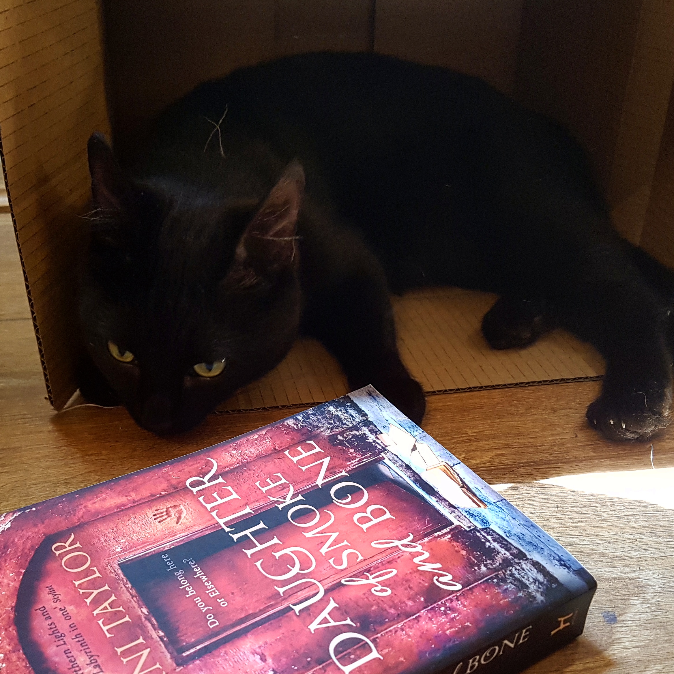 And again! Hiding from the hoover in her favourite box with a good book.